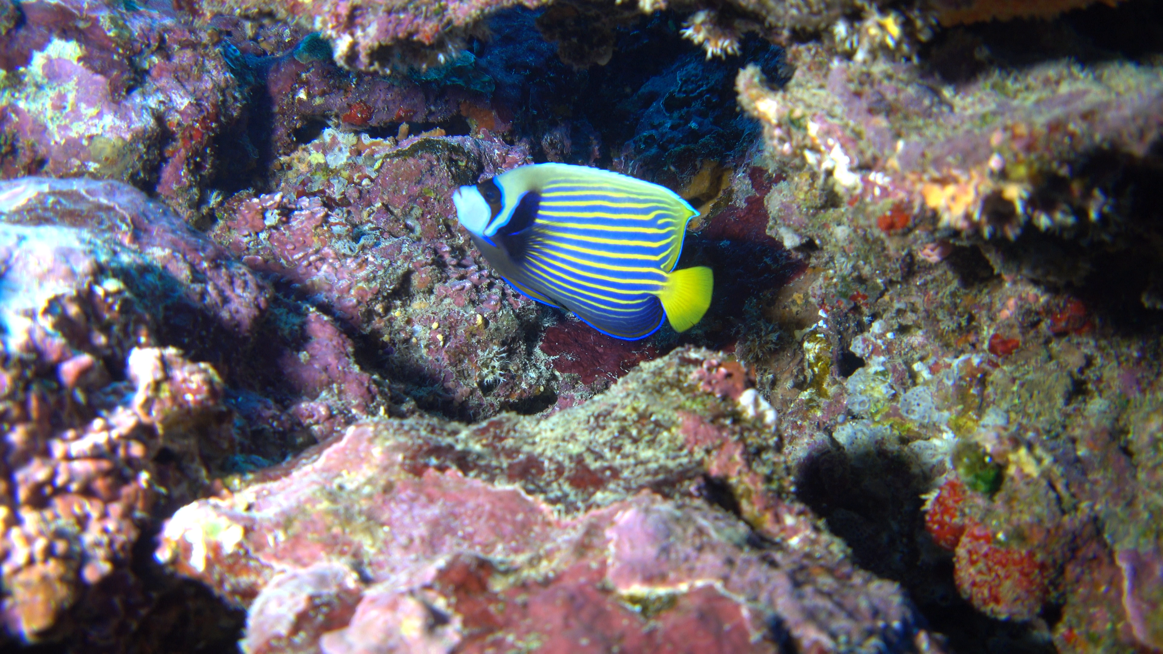 Trying to deal with sensory overload was challenging as one great subject followed or interrupted the next. Certain species were less abundant than last week, as fish collectors had been through the area, plucking the little bandit anglefish ($$$) and many of the small Potter's Angelfishes.