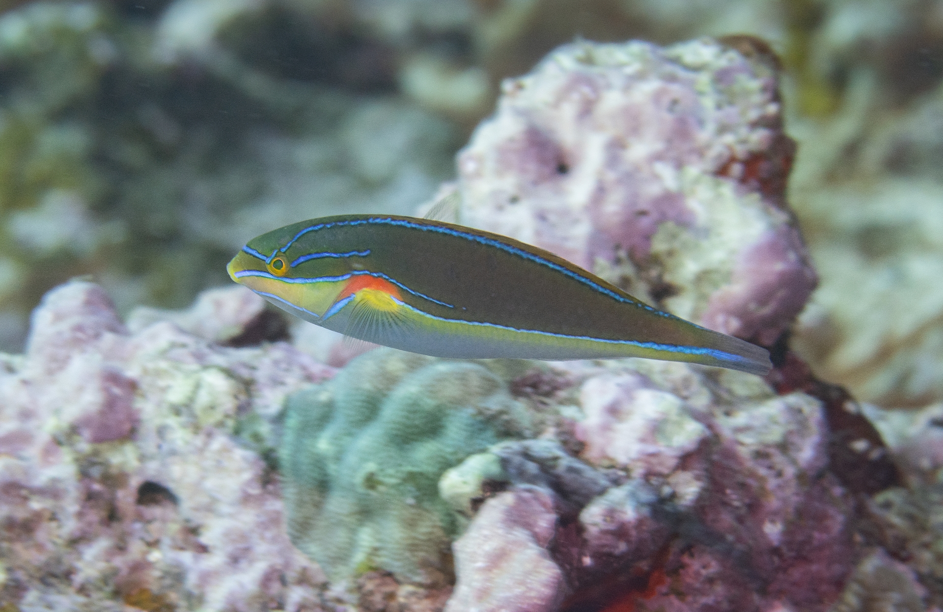 Trying to deal with sensory overload was challenging as one great subject followed or interrupted the next. Certain species were less abundant than last week, as fish collectors had been through the area, plucking the little bandit anglefish ($$$) and many of the small Potter's Angelfishes.